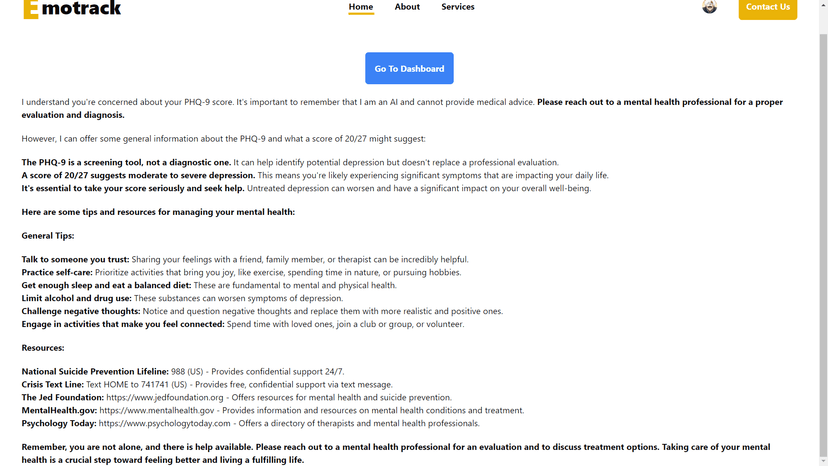 This is a chat application where users can ask questions related to their mental health. The Gemini knows your complete data about your health